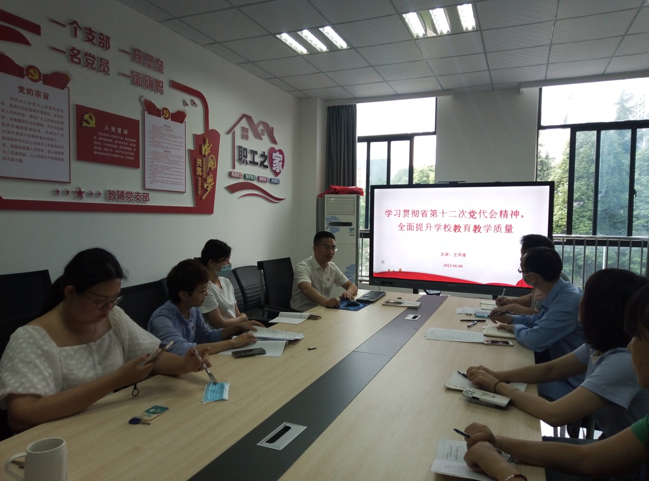 6月8日,我校教辅党支部召开专题学习会议,会议由支部联系党委委员王开淮同志为全体党员同志宣讲四川省第十二次党代会精神。会议由支部书记韩代云主持。