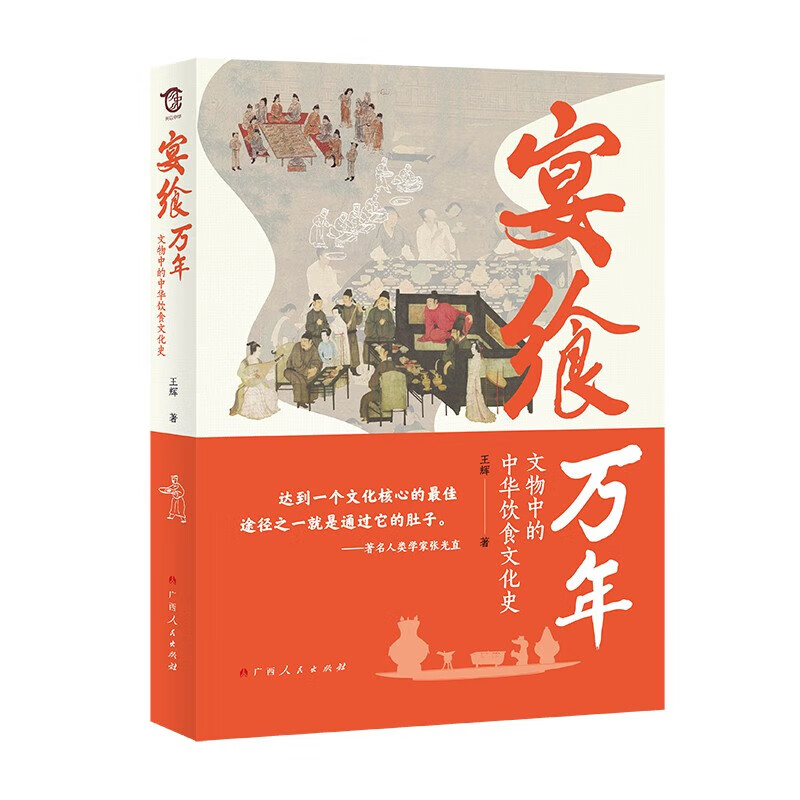 2024年,由中国国家博物馆研究馆员王辉著、广西人民出版社出版的《宴飨万年:文物中的中华饮食文化史》用新颖的叙事视角——精选从新石器时代到清朝的文物品类,以文物展示为线索展开创作,不论是考古发现中的食物遗存,还是文物典籍、壁画砖石、画像丹青,这些“时空碎片”带着我们走进了一场又一场饮食与文物碰撞、文物与文化交织的历史盛宴。本书从食材、饮品、器具、烹饪、礼仪、艺术等多个方面对华夏民族的饮食文化做了详细的源流梳理,再从饮食结构、餐饮工具的讲述转为礼仪与哲学等精神品格的揭示,层层递进式地将中国的历史、文学、哲学、社会、经济与医药等各个领域熔为一炉,成为整个华夏文明的具象化举隅。