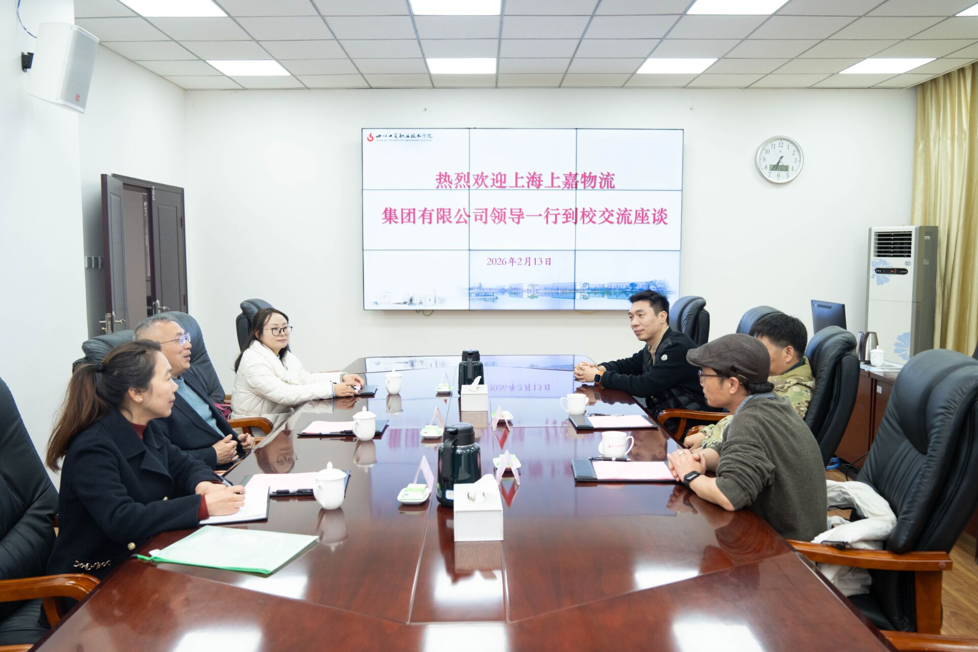 2月13日下午,上嘉物流有限公司负责人杜庆东、四川景象自然设计工程有限公司负责人颜运富一行到校交流座谈。学院党委副书记、院长邓春生出席座谈会并讲话。招生就业处处长孔蕊、经济管理学院副院长梁宁参加座谈并陪同调研。双方围绕数智化人才培养、校企深度合作等重点内容进行交流,达成多项合作共识,为下一步合作落地奠定良好基础。